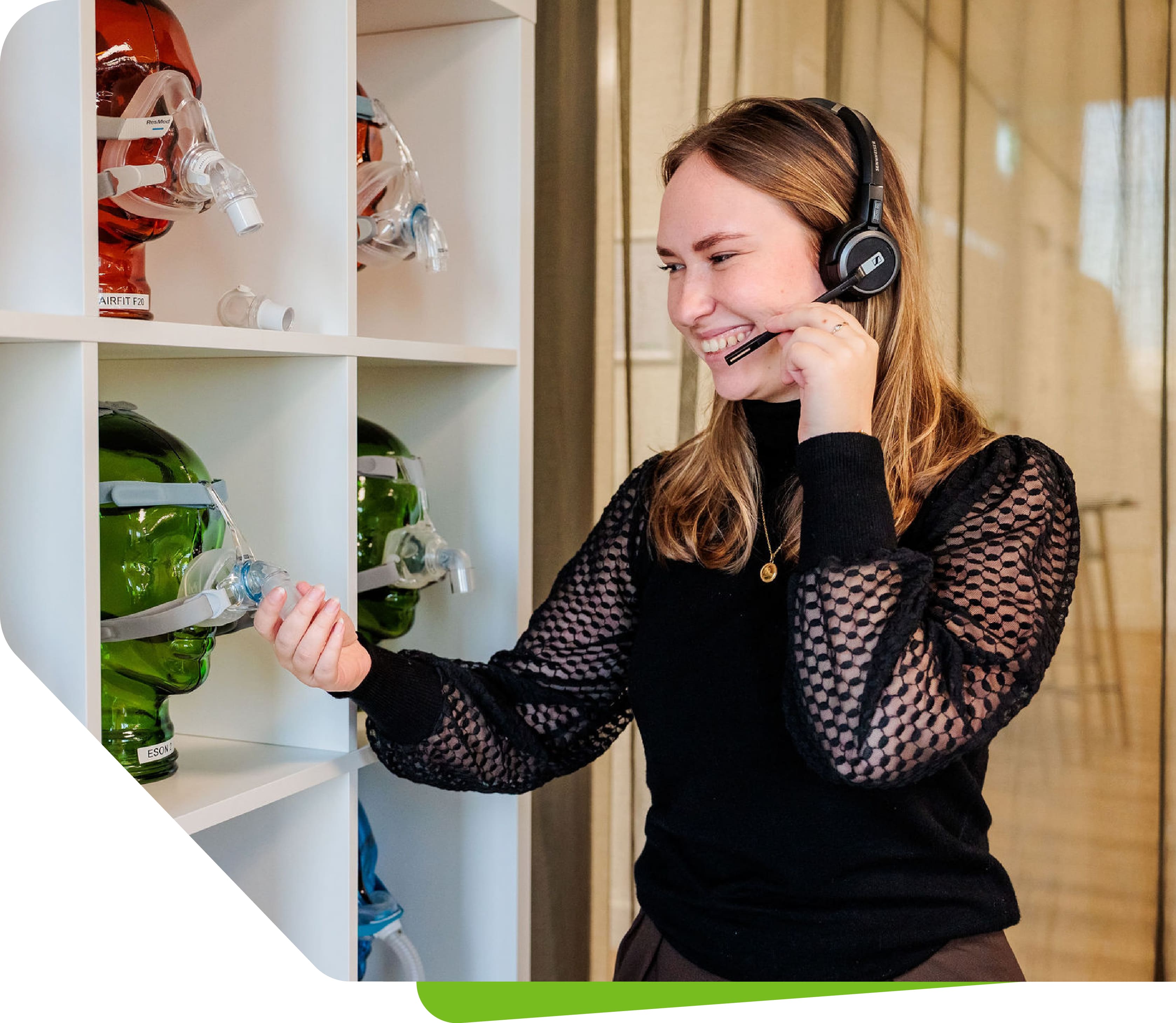 “Wij beantwoorden vragen over het gebruik van apparaten en maskers voor slaapapneu, of lossen problemen op voor de patiënt.” – Moniek (Senior Customer Service OSAS)